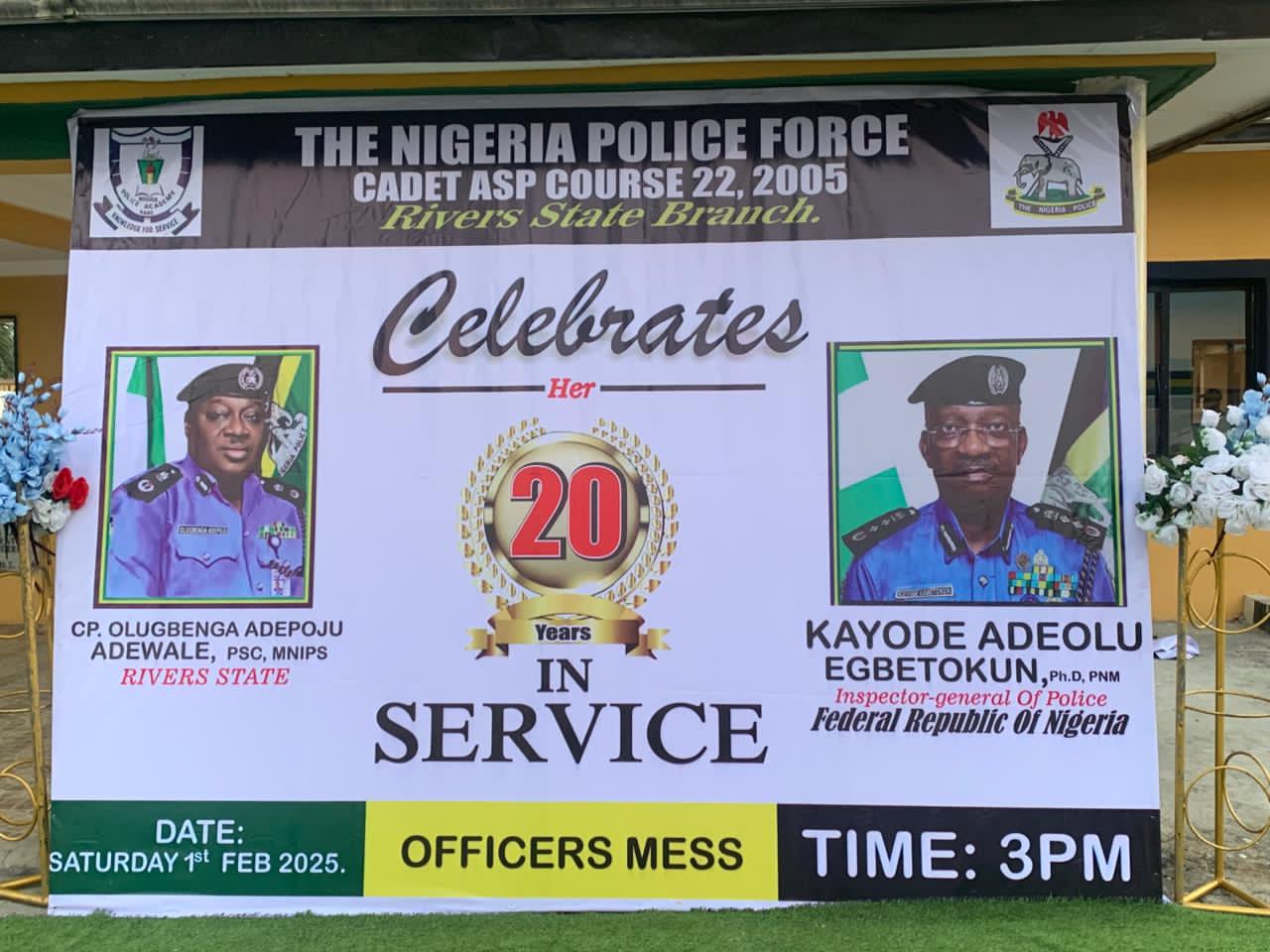 The Commissioner of Police in Rivers State, CP Olugbenga Adepoju, has advised Police Officers not to envy their mates and colleagues doing much more than them. CP Adepoju gave the advice on Saturday, Ist February 2025, during the 20th-anniversary celebration of Cadet ASP Course 22 at Officers Mess, Old GRA, Port Harcourt.