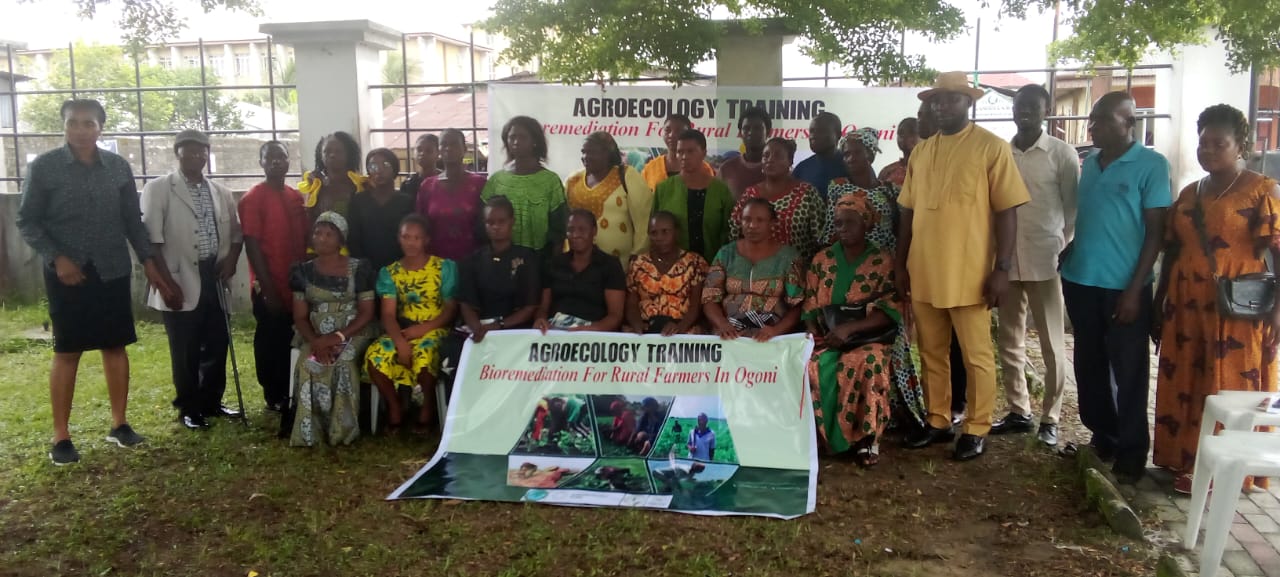 This was during an agroecology training session for 20 farmers in Khana Local Government Area. The training was organised to educate rural farmers on achieving healthy soil and mitigating the devastating impact of oil spills, climate change, and environmental degradation on agriculture in Ogoni.