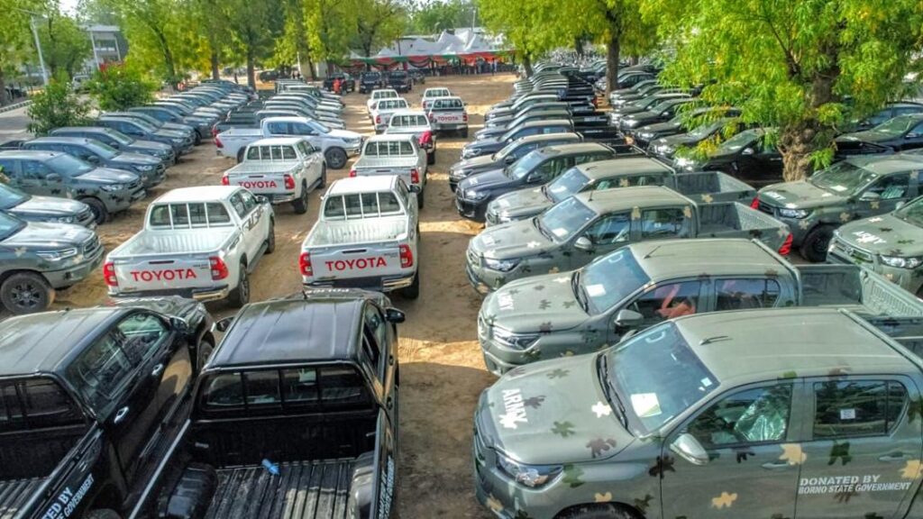 Borno State Governor Babagana Umara Zulum has distributed 110 brand-new operational vehicles, 500 motorcycles, and 280 houses to the Nigeria Police Force and other security agencies to assist in the ongoing war against crime in the state.