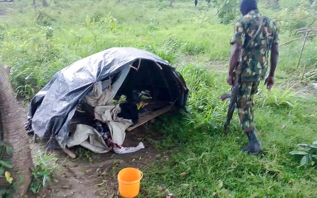 Operatives reportedly trekked nearly five kilometres deep into the forest between Afuze and Ora, where the camps were uncovered and destroyed.
