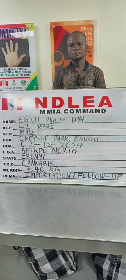 Operatives of the National Drug Law Enforcement Agency (NDLEA) have arrested a suspected drug trafficker, Egwu Inya, who claims to be a building engineer while attempting to take delivery of illicit consignments concealed in pressure machines imported from South Africa.