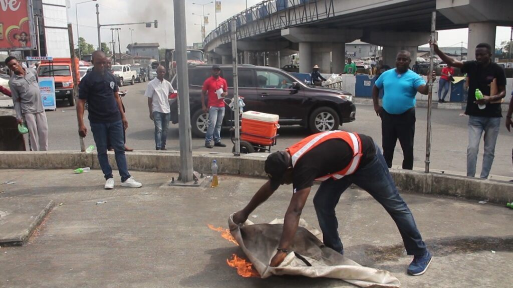 The Federal Fire Service held road work from Garrison to Rumuola in Port Harcourt, the Rivers State Capital, demonstrating basic fire fighting knowledge to the public.