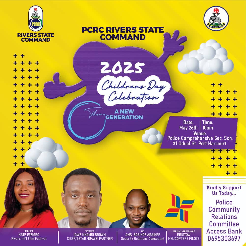 The Chairman of PCRC in Rivers State, Voke Emore, made the disclosure on Monday, May 26th, 2025, in celebration of Children’s Day with students of Police Comprehensive College and over 19 schools in Port Harcourt ahead of May 27th, 2025.