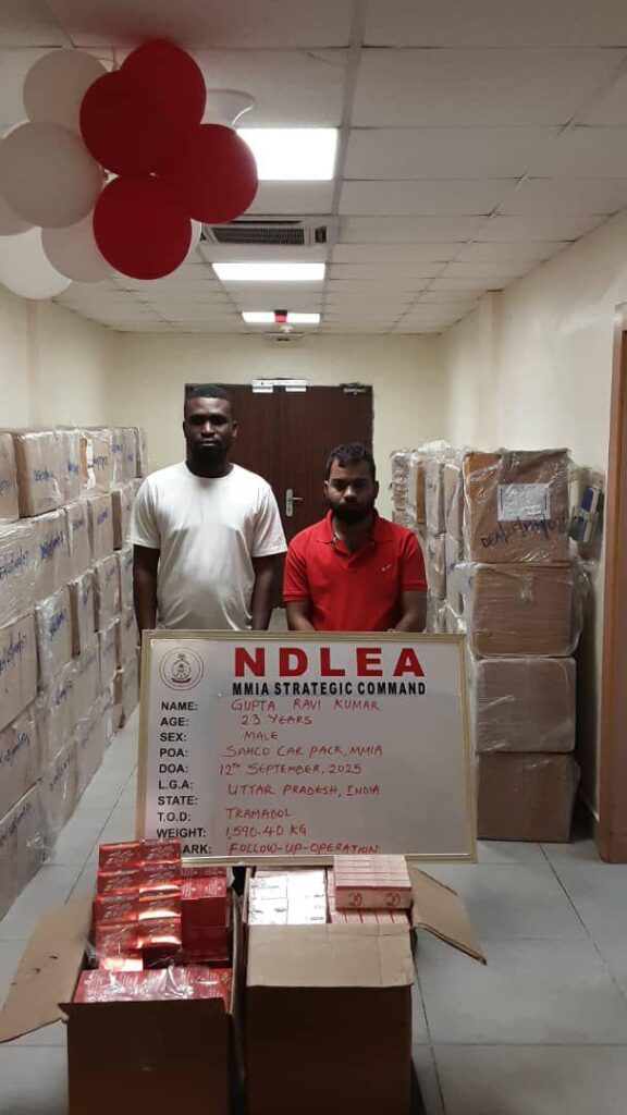 An Indian businessman Gupta Ravi Kumar and three Nigerian accomplices: Ogunlana Noah Olanrewaju, Olushola Idrees Kayode and Bakare Korede Muheeb have been arrested by operatives of the National Drug Law Enforcement Agency (NDLEA) in connection with the seizure of 2,248,000 pills of tramadol 200mg/225mg intercepted at the Murtala Muhammed International Airport (MMIA), Lagos.