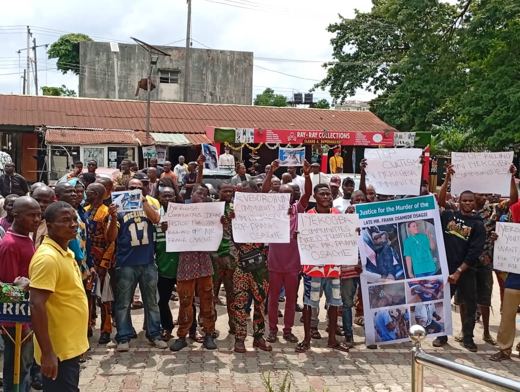 The youths and Elders of Iyekogba community have protested the killing of a community leader Frank Osamede Osagie allegedly orchestrated by the Okaghele of Ikpebor community, Martins Agbotaen.