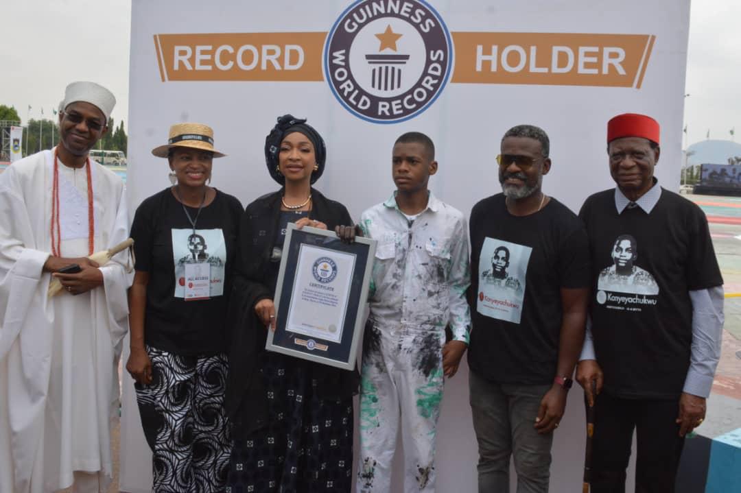 Fifteen-year-old Kanyeyachukwu Tagbo-Okeke, a Nigerian artist, received the Guinness World Record certificate for the largest artwork ever on Wednesday. Kanyeyachukwu had, on November 24, 2024, broken the Guinness World Record for the largest canvas painting when he painted on a 12,303.87 square meter canvas, surpassing the previous record of 9,632 square meters.