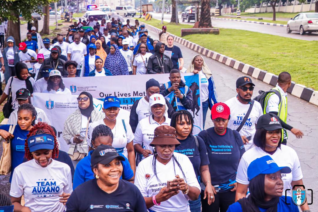 Staff of National Agency for Prohibition of Trafficking in Persons (NAPTIP) walked through the streets of the Federal Capital Territory, Abuja on Monday to sensitize the public to the dangers of human trafficking.