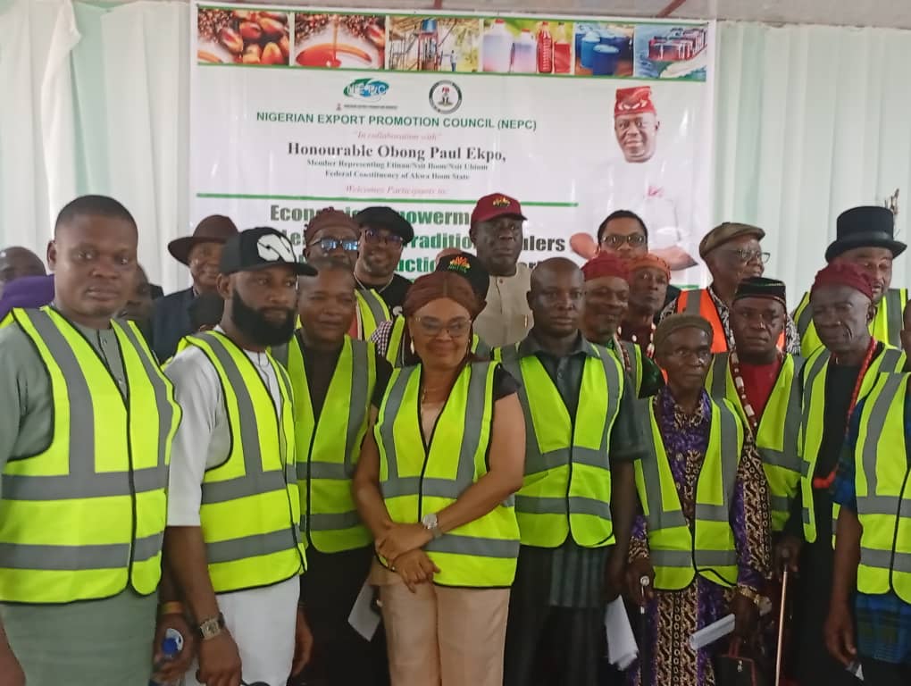The Nigerian Export Promotion Council (NEPC) in collaboration with Mr Paul Ekpo, the member representing Etinan Federal Constituency, has distributed oil palm seedlings and money to 50 farmers in the area.