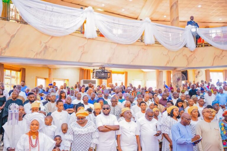 Also speaking at the event, Governor Caleb Mutfwang of Plateau State thanked President Tinubu for taking the time to attend the burial of the APC chairman’s mother in the state.