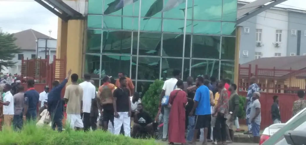 In Abua- Odua LGA, the PDP-Wike faction chanted and protested to their office, which shares boundaries with the Council Secretariat. However, the new LGA Chairman of Abua/Odual has moved in to swear his new councillors.