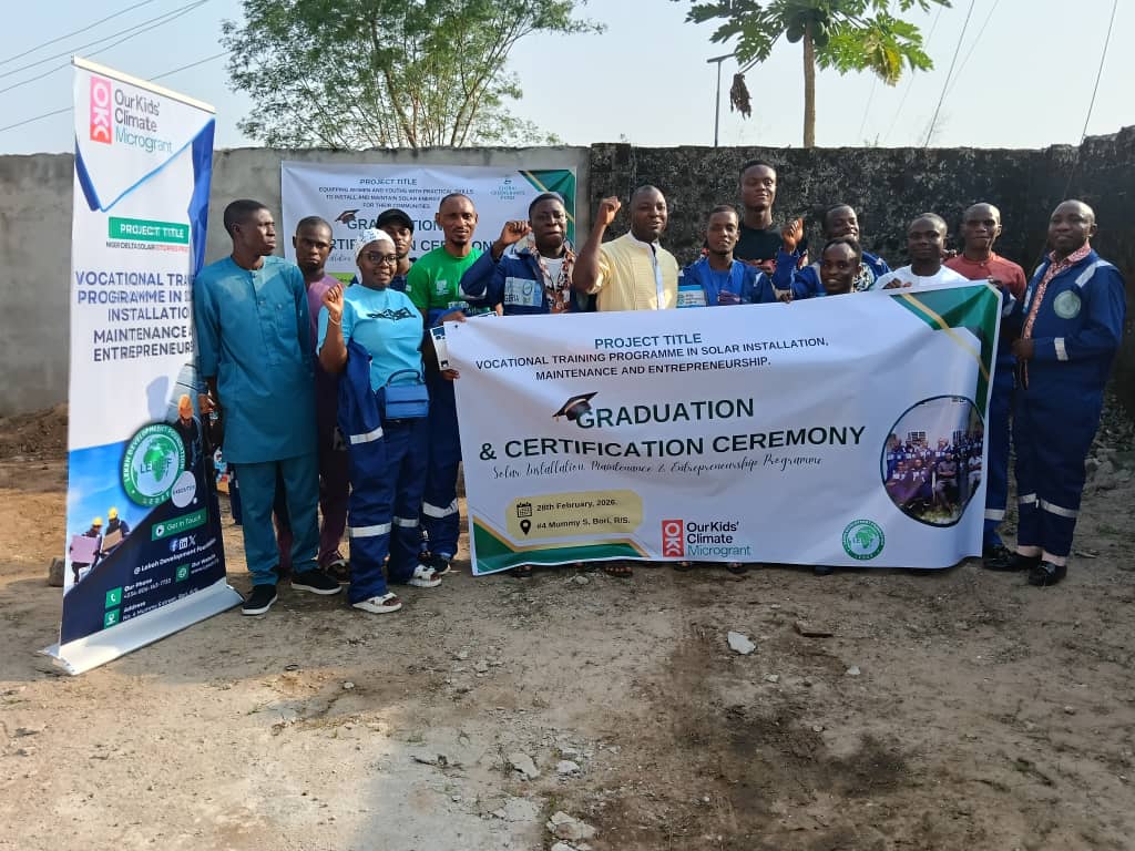 Youths in Ogoni have been equipped with practical skills in solar installation and entrepreneurship following a two-week vocational training organised by the Lekeh Development Foundation in partnership with Our Kids Climate Microgrant (OKS).