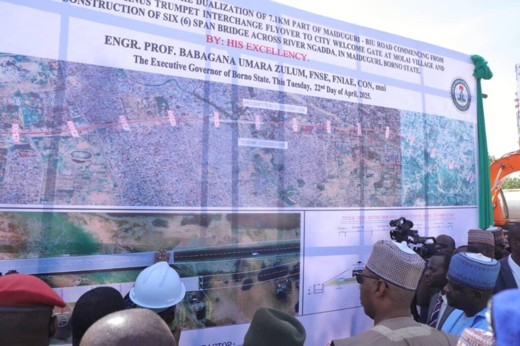 On Tuesday, Borno State Governor Prof. Babagana Zulum inaugurated the construction of a 7.1-kilometer terminus junction for the Molai Express Road, complete with a 6-span bridge and the state’s fourth flyover along Maiduguri’s busy Post Office area.
