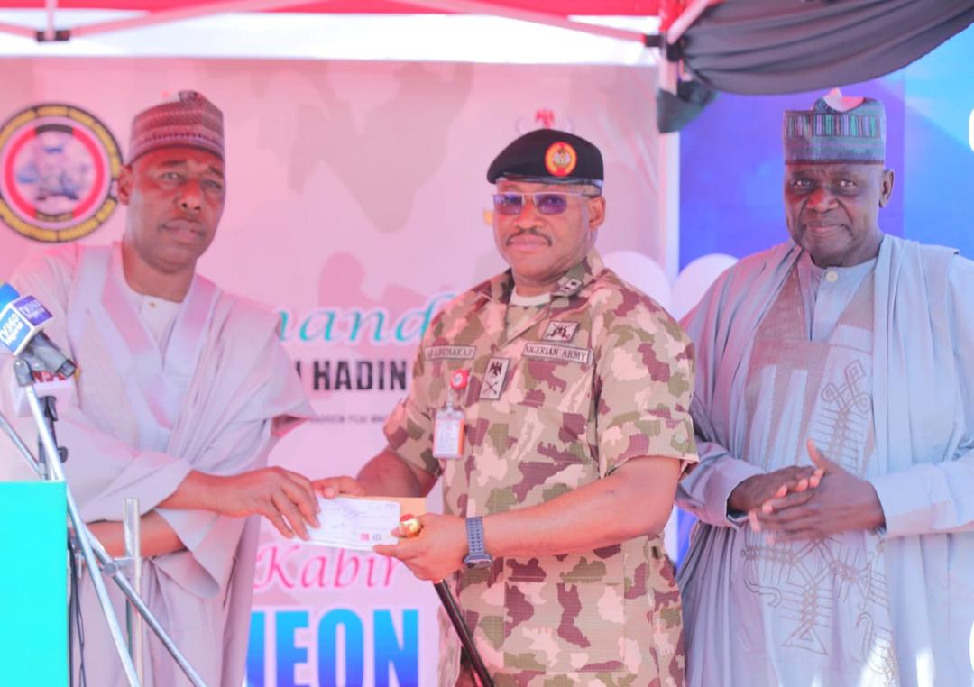 The donation was made on Saturday at an Eid El-Kabir Sallah luncheon hosted jointly by the Chief of Army Staff, Lieutenant General Olufemi Oluyede, and the Chief of Air Staff, Air Marshal Hassan Abubakar, held at Maimalari Barracks in Maiduguri.